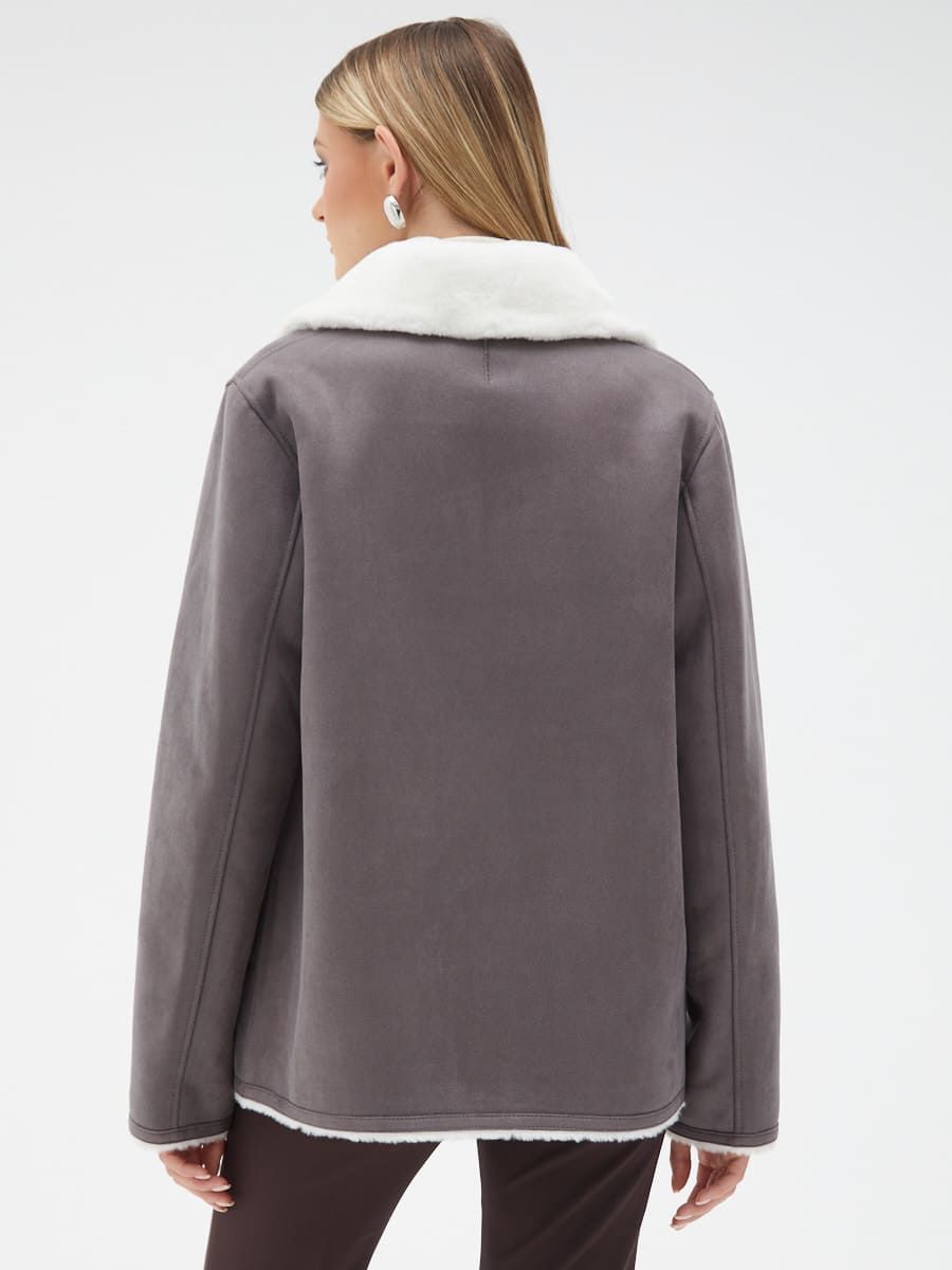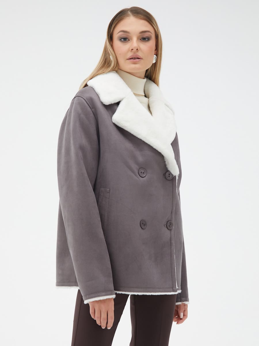 Вид ворота - английский воротник, отделка эко мех
