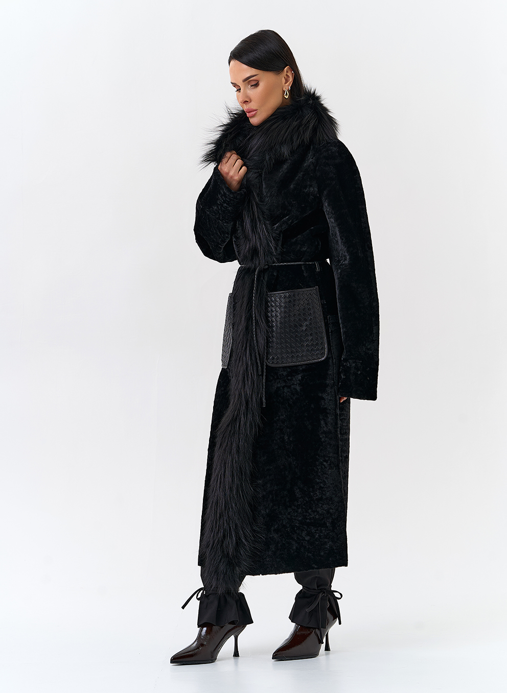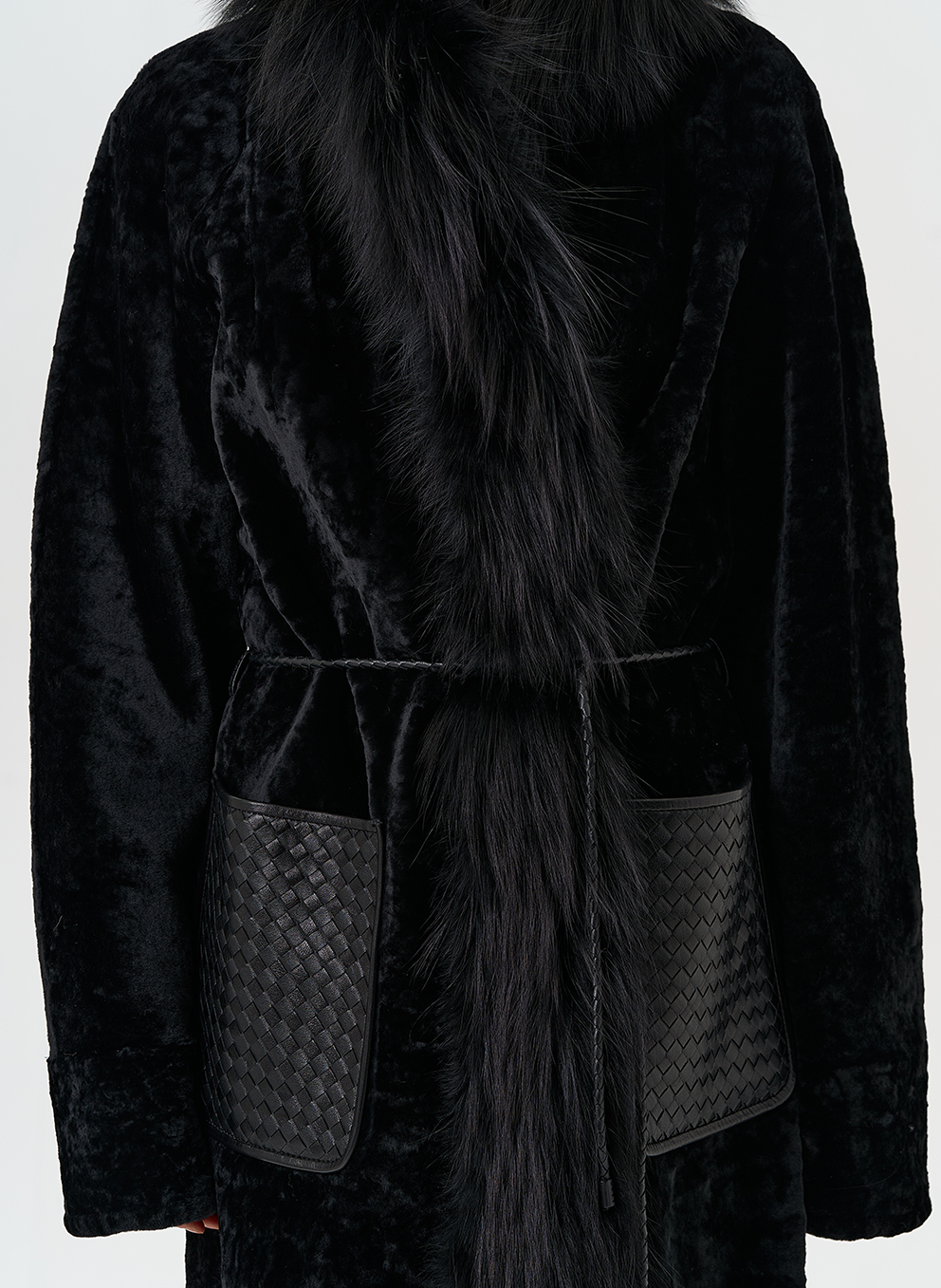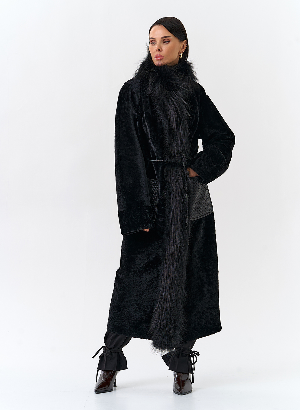 Вид ворота - апаш, отделка чернобурая лиса, цвет - черный
